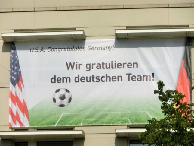 : Blöd gelaufen: NSA gratuliert dem deutschen Team Die US-Botschaft in Berlin freute sich, mit einem Plakat in Berlin dem deutschen WM-Team zu gratulieren und das über Facebook zu verbreiten. Und ein kreativer Kopf freute sich über diese tolle Adbusting-Vorlage, die viel fleissiger gerade in sozialen Medien geteilt wird. Original: Fälschung:
