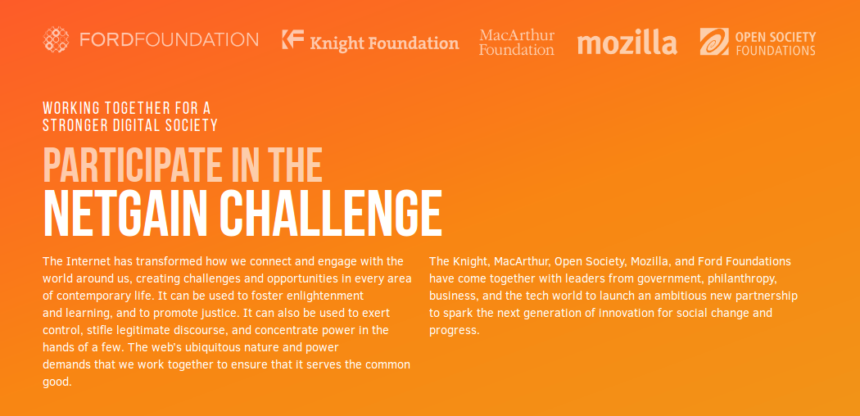 : Netgain-Challange in den USA: Wie fördert man die digitale Zivilgesellschaft? Wie fördert man die digitale Zivilgesellschaft? Während dieses Thema in Deutschland bisher kaum diskutiert wird, haben sich in den USA einige Stiftungen zusammen geschlossen, um neue Wege zu gehen. Die „Netgain Challenge“ stellt Fragen, was wie gefördert werden soll und was die größten Herausforderungen und Anstrengungen sind, die Geld brauchen. Dahinter stehen Knight, MacArthur, Open […]